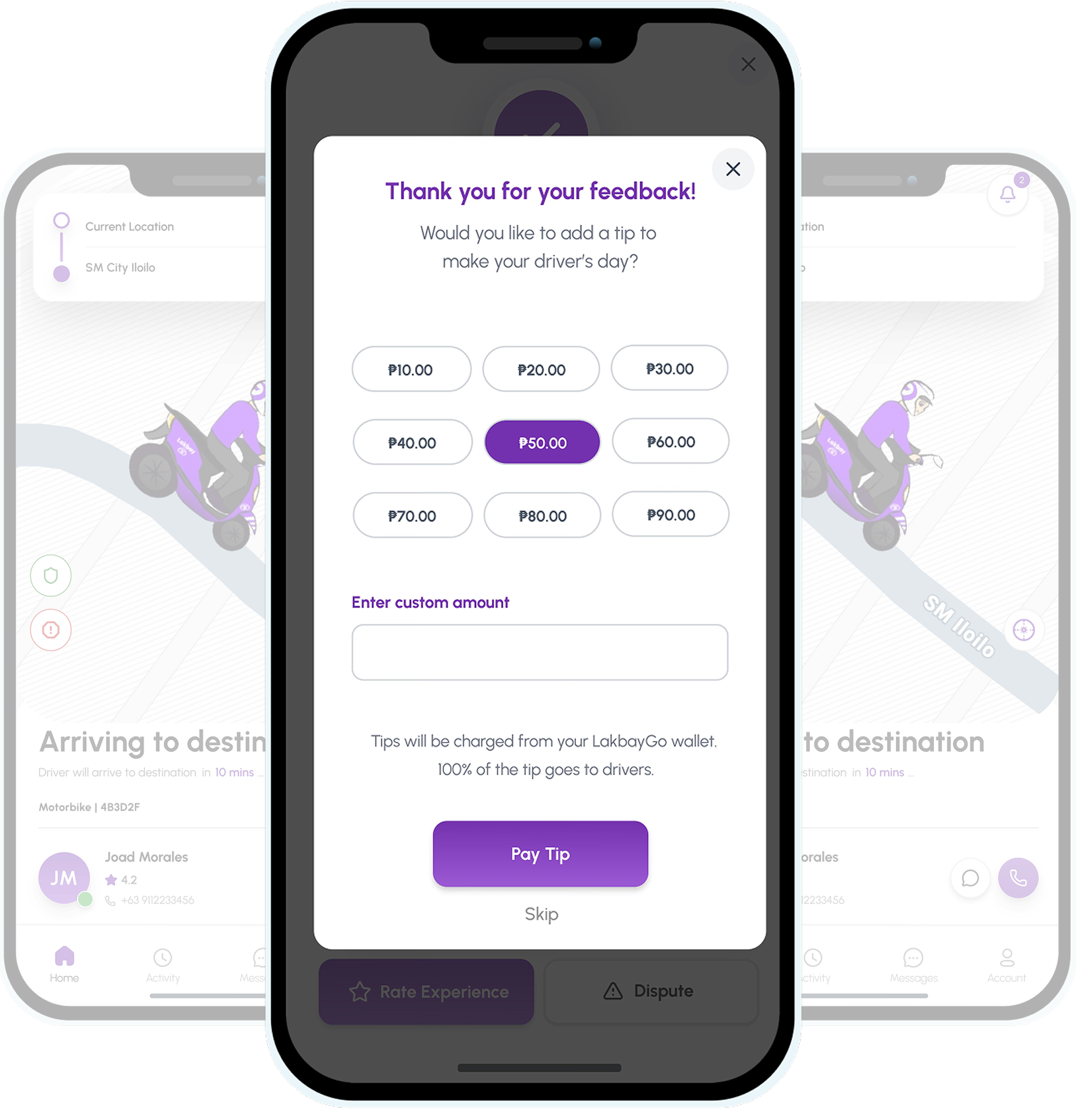 Experience the simplest way to show appreciation. Lakbay makes tipping seamless, secure, and 100% direct to your driver.